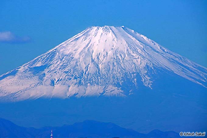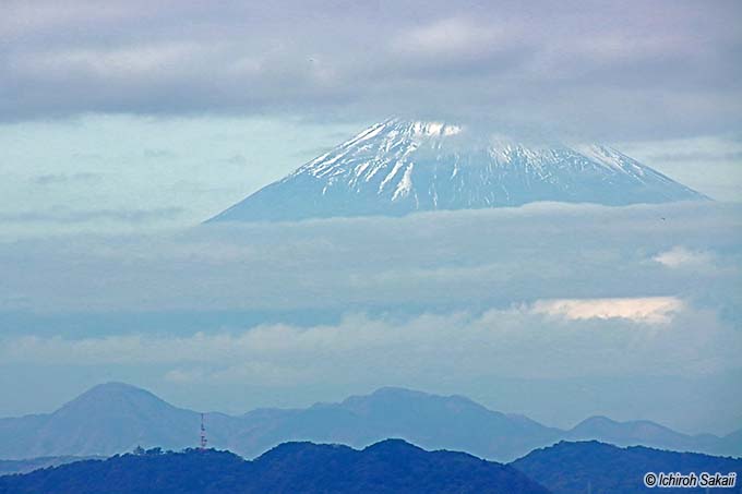 ちょこっと顔を覗かせた富士山 11/23 09:47 鵠沼海岸